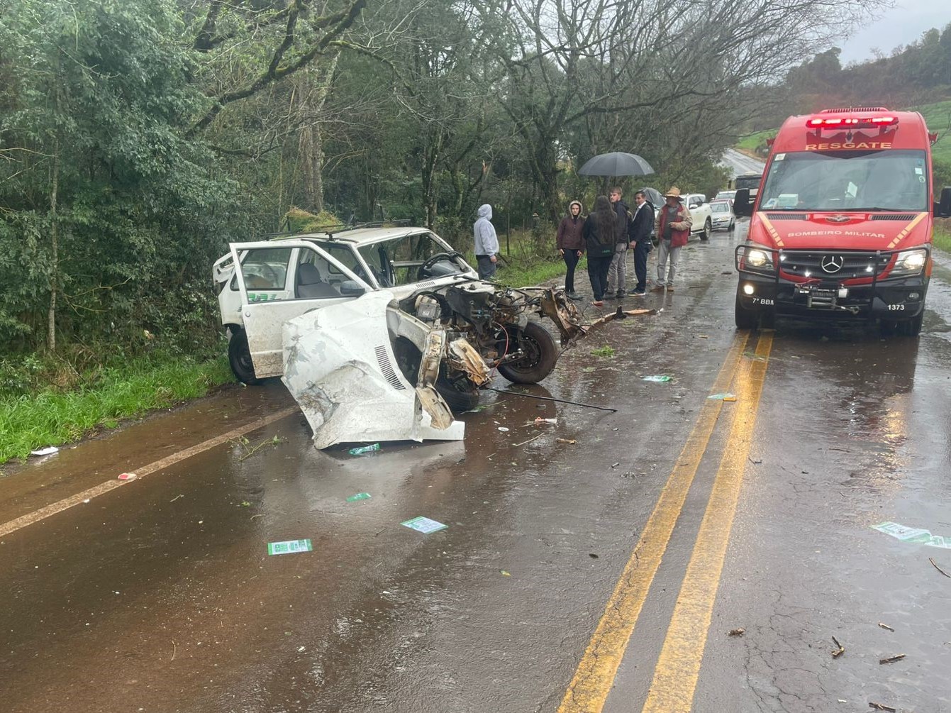 Segundo o CRBM, a pista estava molhada devido a chuva no momento do acidente.