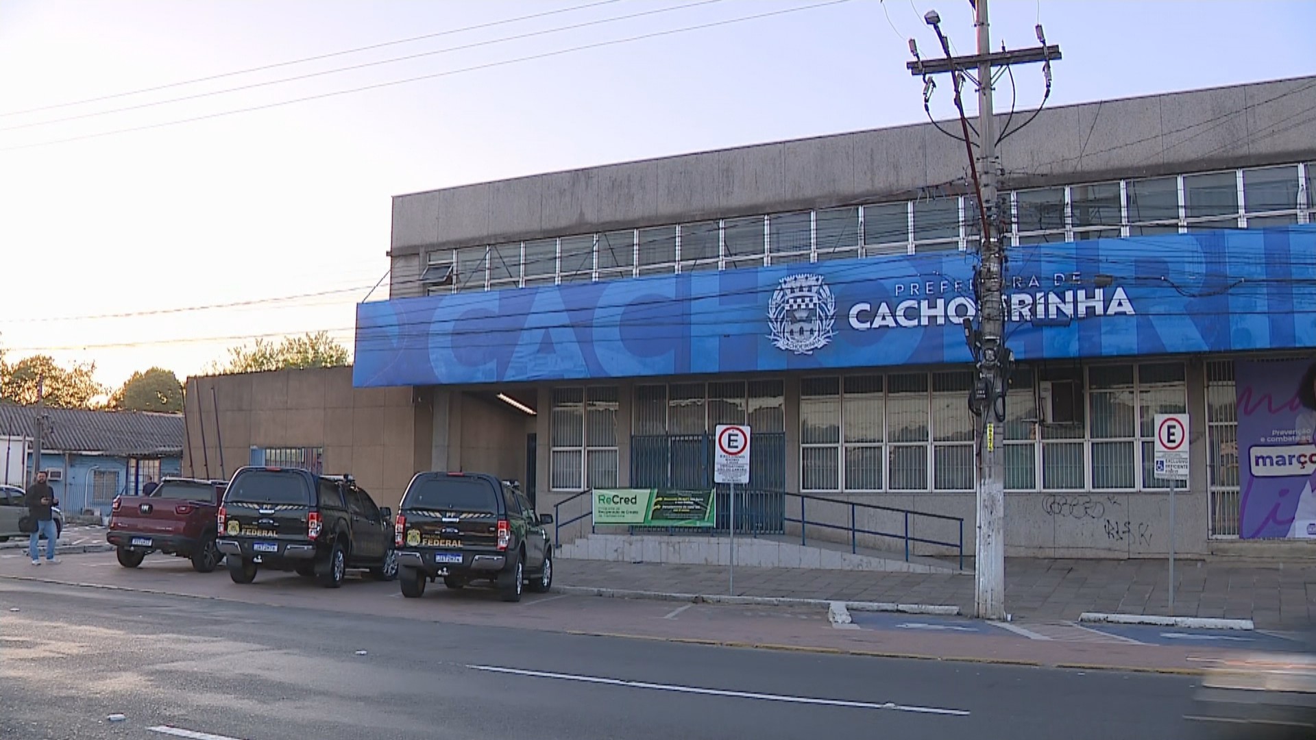 Agentes da PF na sede da Prefeitura de Cachoeirinha — Foto: Reprodução/RBS TV