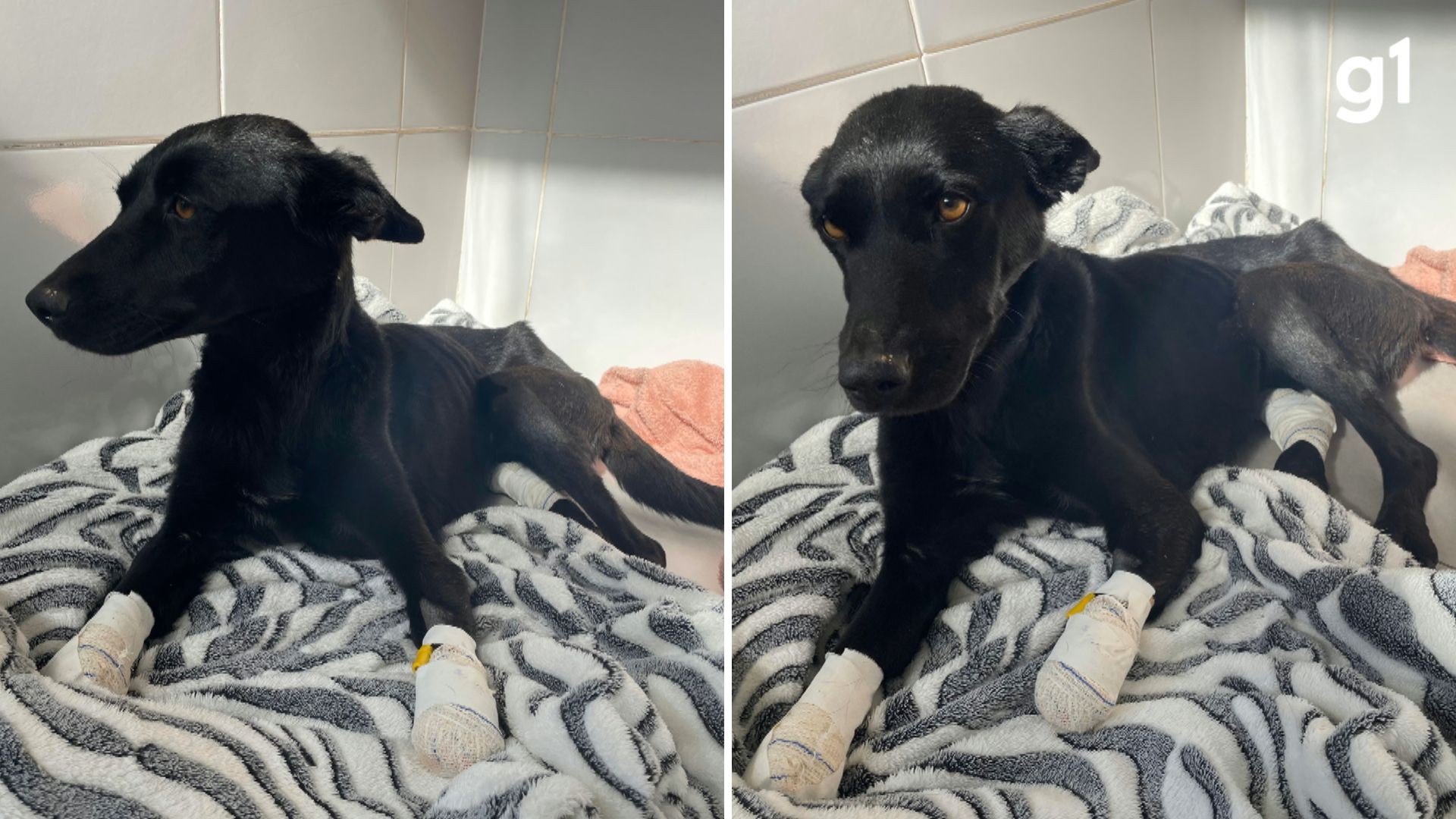 Cadela ‘Anja’, resgatada com membros cortados, amputou 3ª pata e colocará próteses: ‘guerreira’, diz veterinária