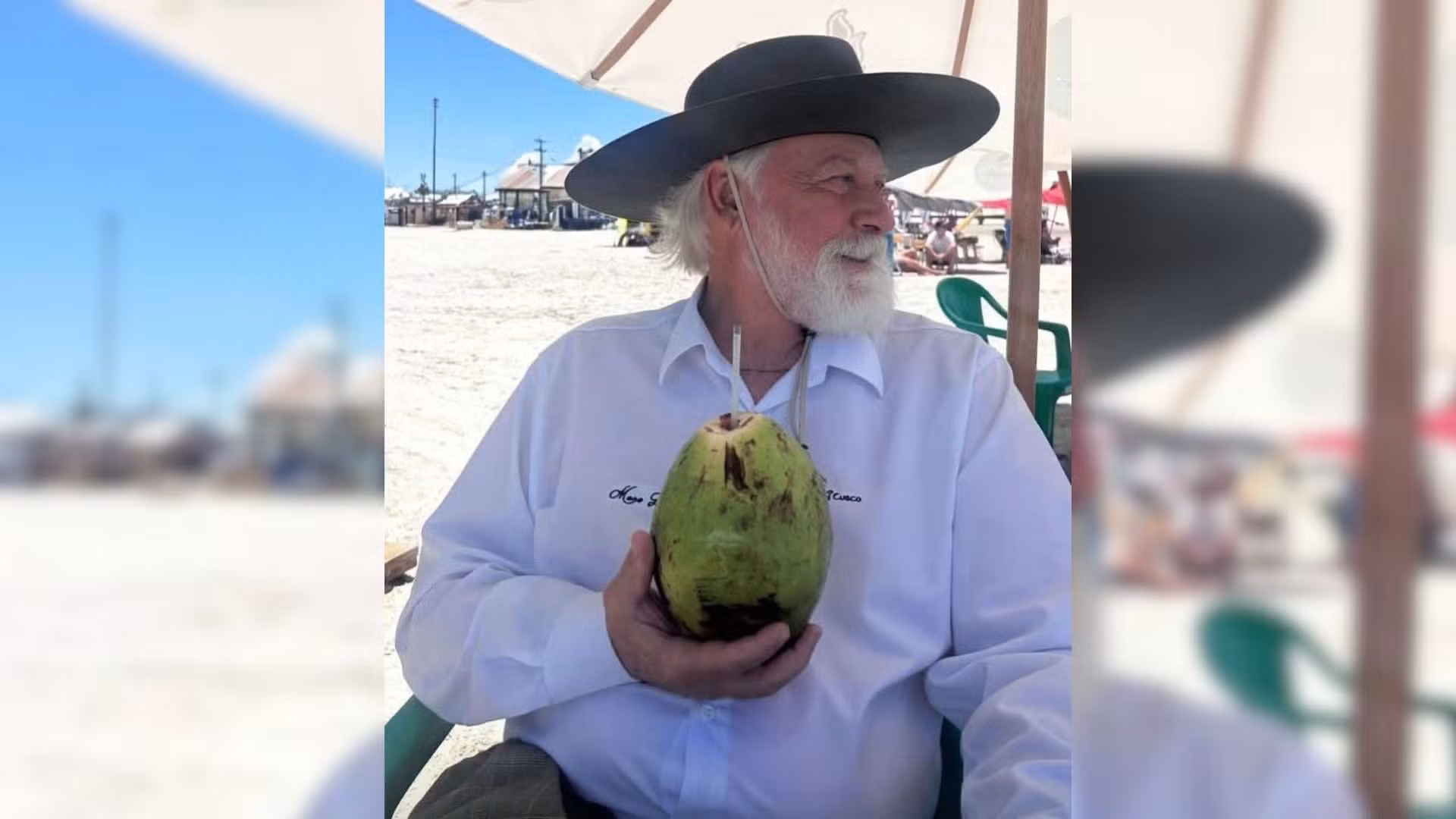 Cantor Mano Lima aparece pilchado e tomando água de coco na beira do praia; veja FOTO