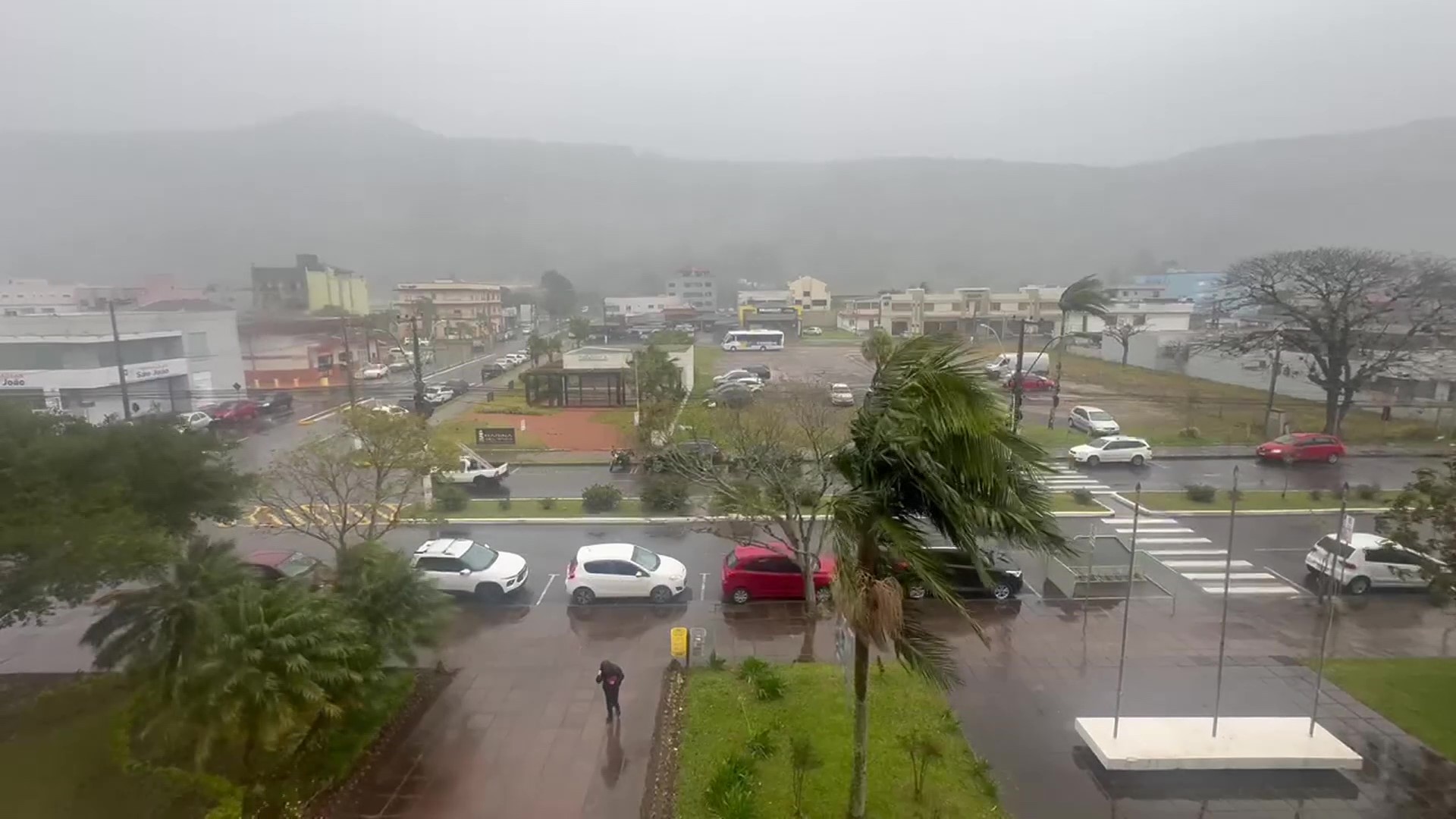 Em Osório, o vento acompanhado de garoa balançou árvores — Foto: Reprodução/RBS TV