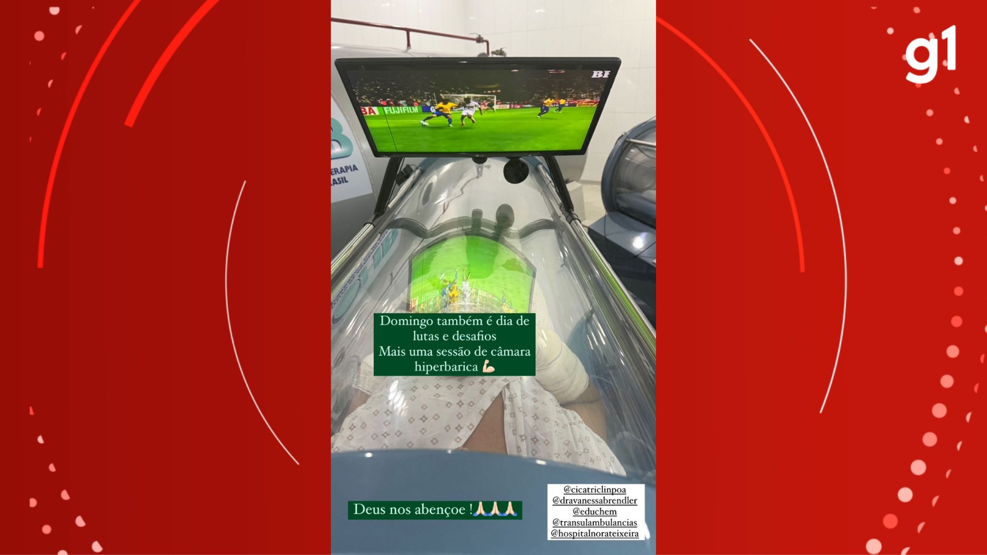 “Domingo também é dia de lutas e desafios”, escreveu Lúcio no post. “Mais uma sessão de câmera hiperbárica”, completou.