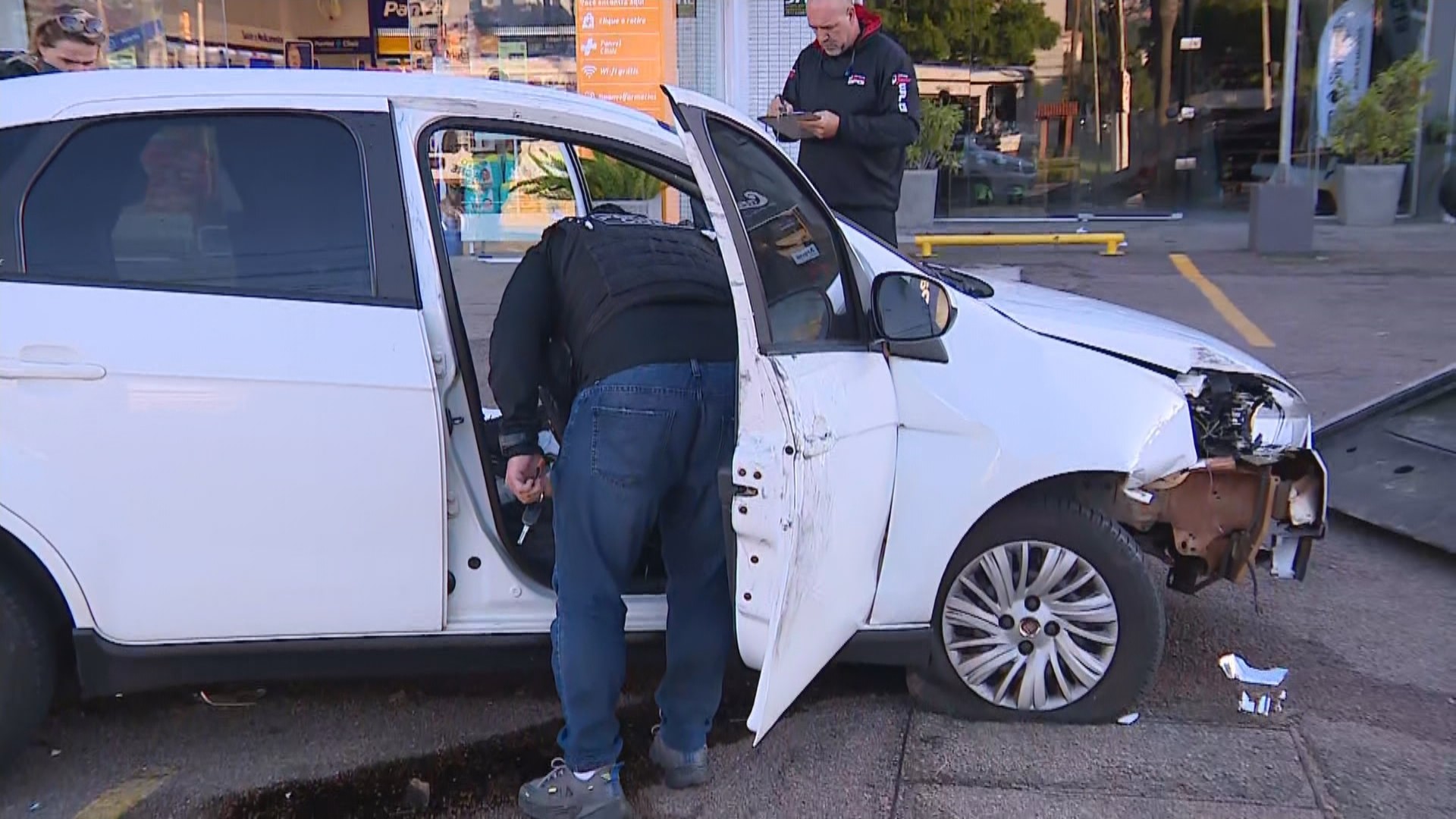De acordo com a polícia, a vítima estava sentada no lugar do motorista e apresentava ferimentos na perna. O veículo estava com a parte da frente danificada. O motorista trafegava na Avenida Ipiranga e teria invadido a calçada no sentido contrário, atingido uma placa de sinalização e derrubado a contenção, na esquina com a Rua José Albano Volkmer, no bairro Jardim do Salso.