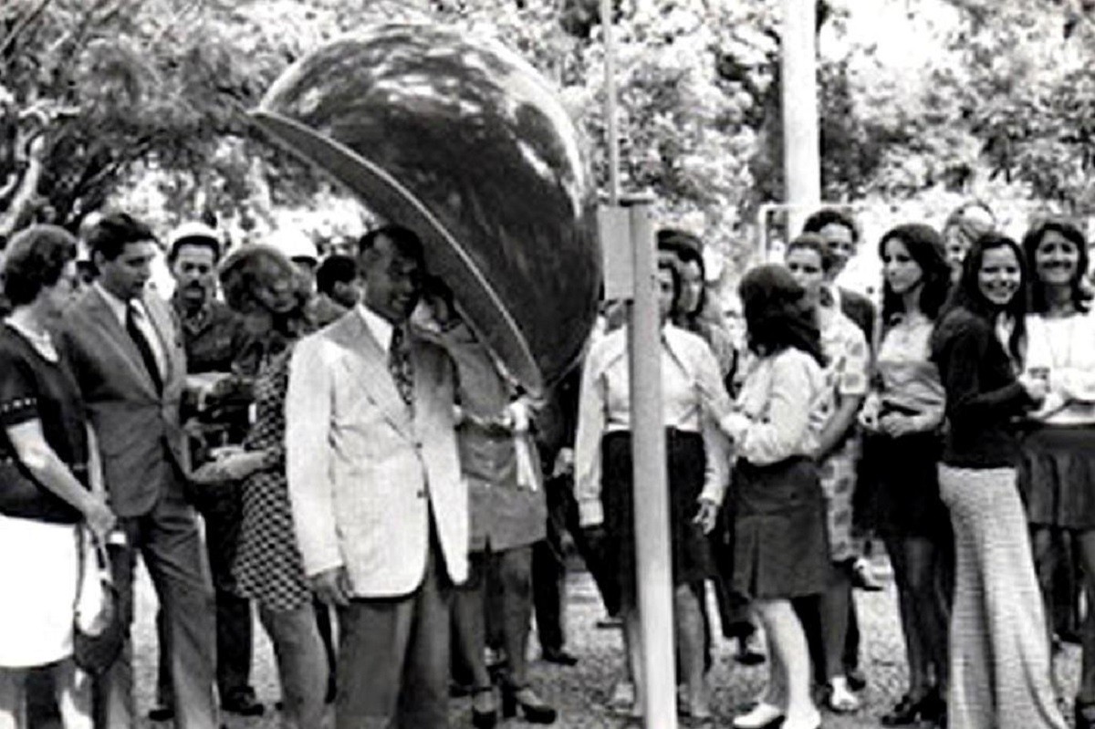 O primeiro orelhão do RS foi instalado em março de 1973, na Praça da Alfândega, em Porto Alegre — Foto: Memorial