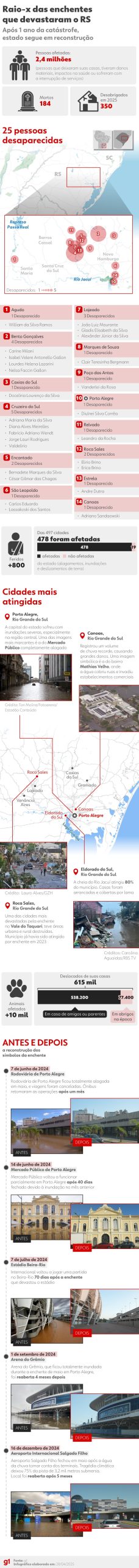 Números da enchente de 2024 no Rio Grande do Sul — Foto: Arte/g1