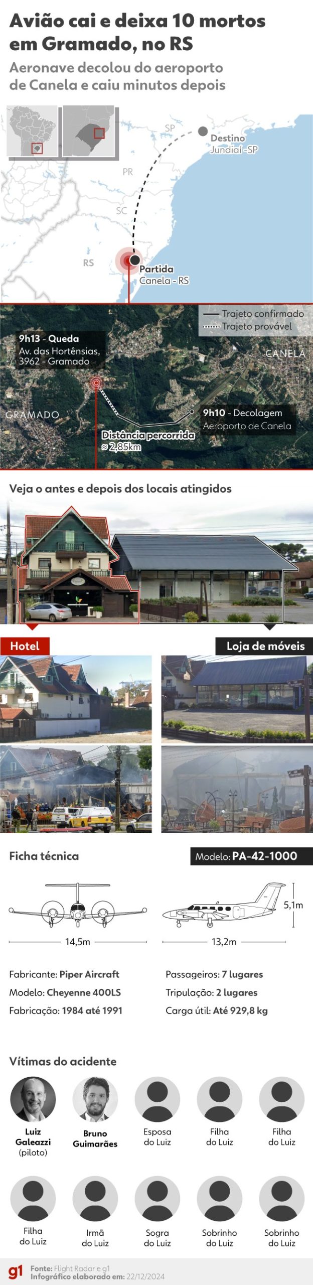 Avião cai em Gramado e deixa 10 mortos — Foto: Arte/g1