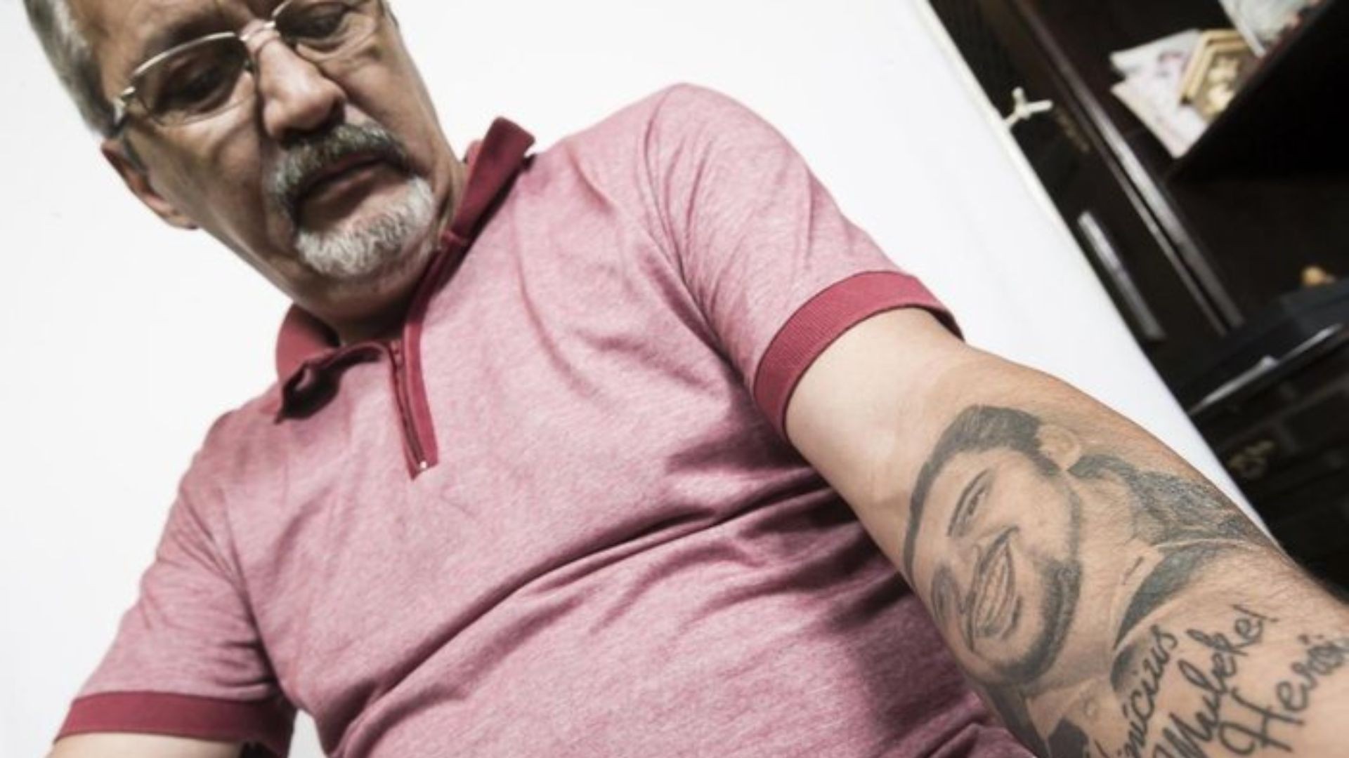 Ogier Rosado, locutor de Santa Maria, tem tatuado o rosto do filho Vinicius, vítima da Boate Kiss — Foto: Jefferson Botega/Agência RBS