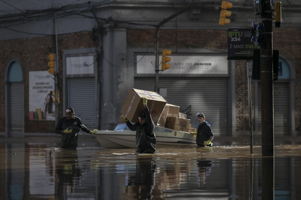 Ruas alagadas na cidade de Porto Alegre em 14 de maio de 2024. — Foto: Anselmo Cunha / AFP