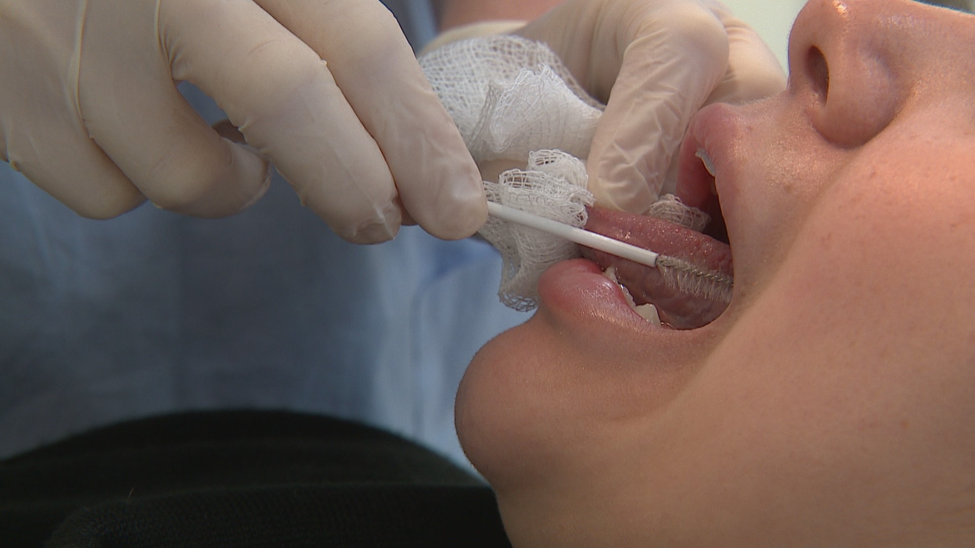 O processo começa com a coleta de fluidos da boca do paciente, que são analisados ao longo de um acompanhamento prolongado.