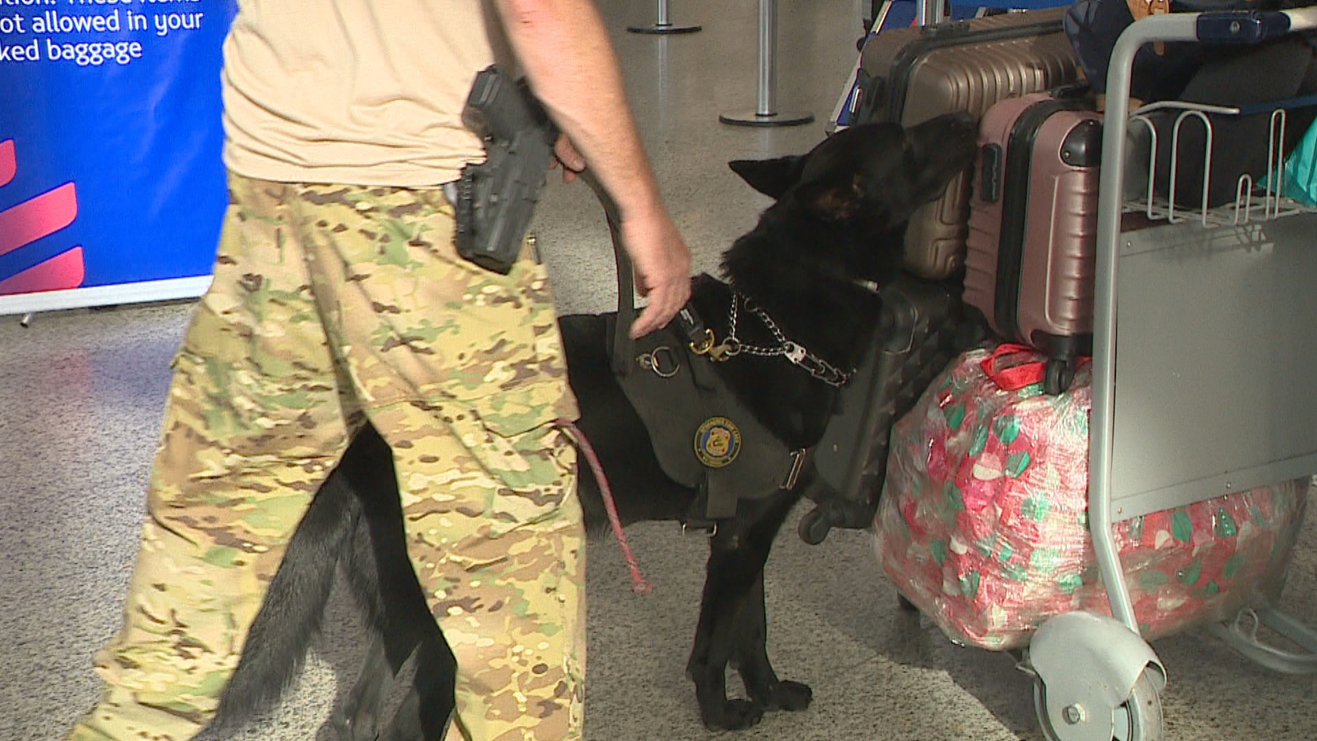 PF e cão Oreo reforçam fiscalização no aeroporto de Porto Alegre — Foto: Reprodução/RBS TV