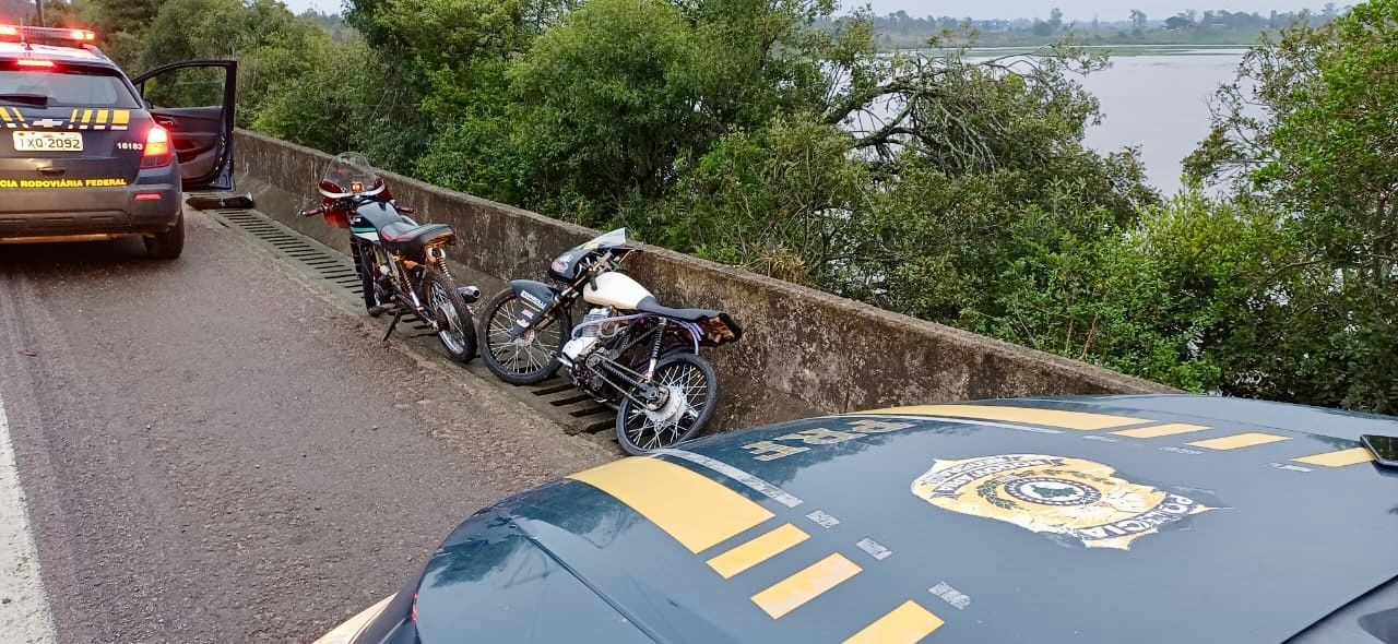 A Polícia Rodoviária Federal (PRF) frustrou uma corrida clandestina de motocicletas, planejada pelas redes sociais e marcada para domingo (21), na BR-392, em Pelotas, no Sul do RS. A organização de rachas é crime de trânsito. Duas pessoas foram presas e as motocicletas, apreendidas.