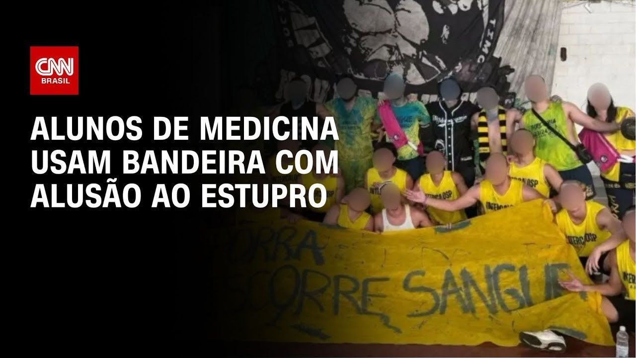 A bandeira continha a inscrição “entra p****, escorre sangue”, frase retirada de um hino da atlética de medicina, banido em 2017. A imagem, registrada no dia 15 de março, foi feita durante um evento esportivo universitário.
