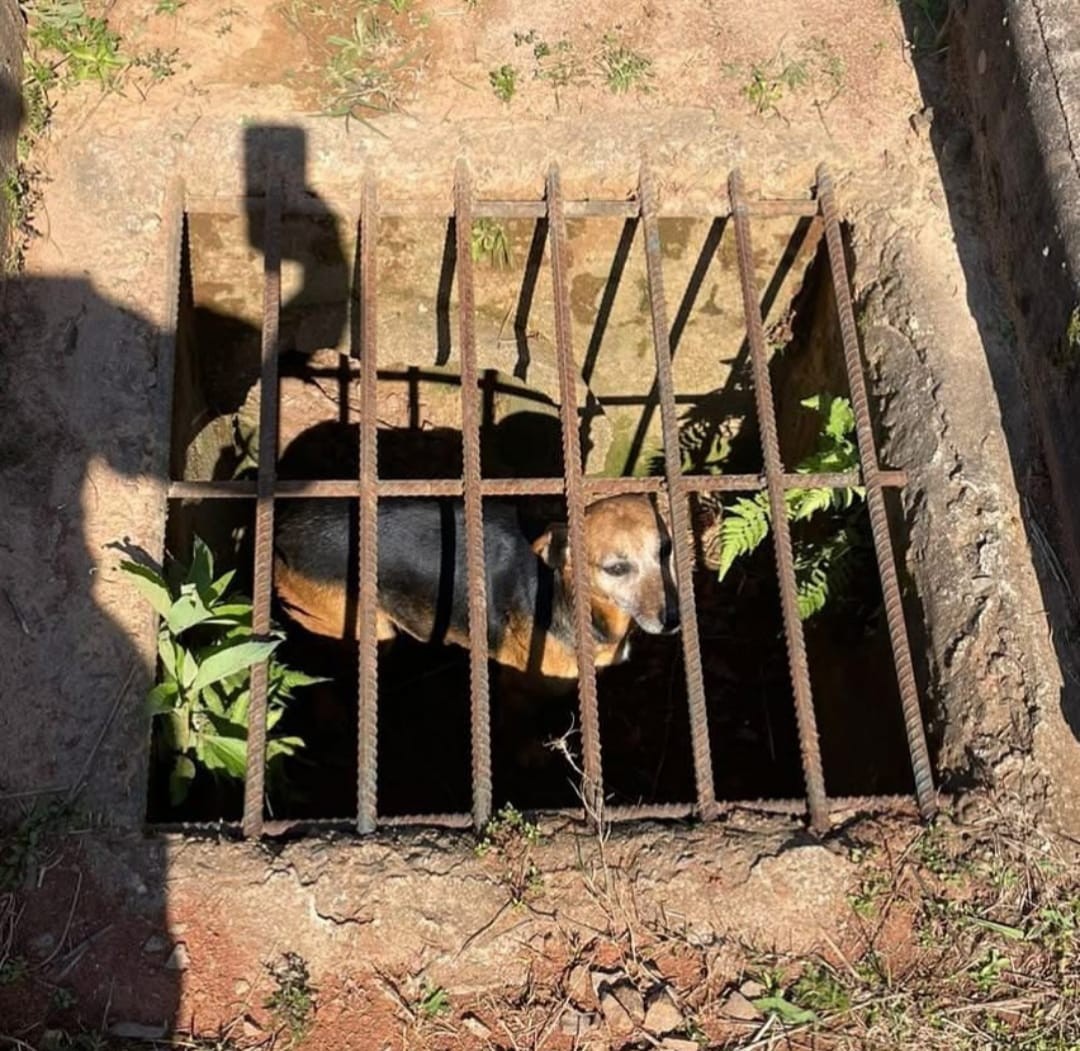 O cão foi localizado preso em um bueiro, no Distrito Industrial, por pessoas que caminhavam pela rua. Elas acionaram os militares, que montaram uma operação para libertar o caramelo.